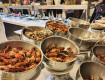 Питание великолепное, мясо, рыба, фрукты, выпечка, торты, мороженое, напитки.
