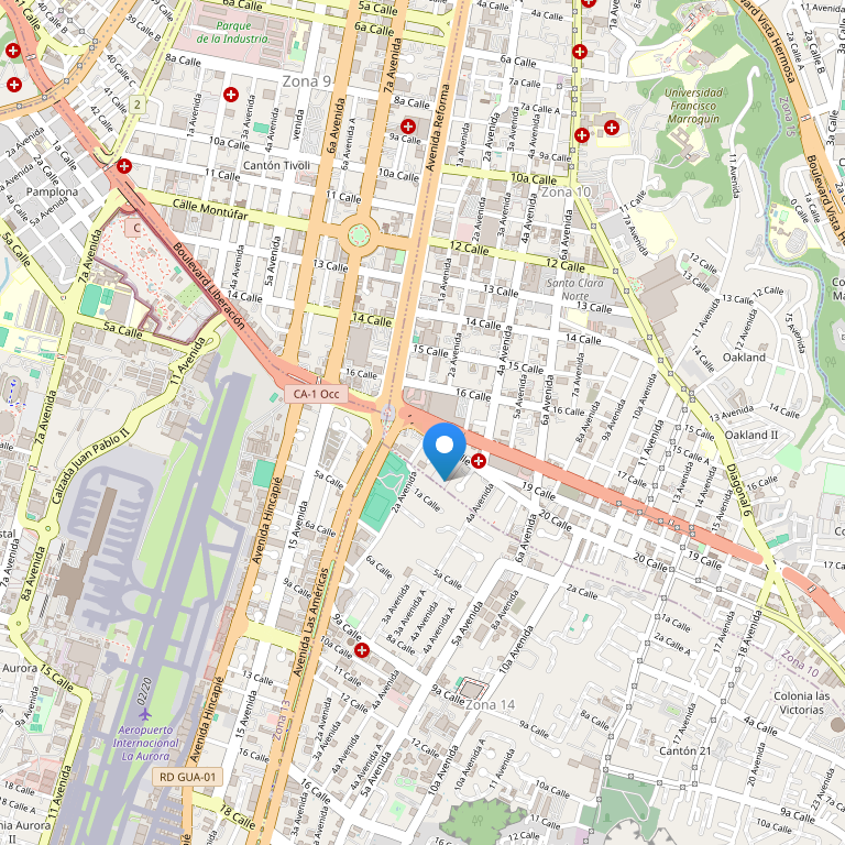 Отель расположен в районе Zona Viva, рядом с деловой, финансовой и развлекательной зонами, в пяти минутах езды от международного аэропорта Гватемалы La Aurora International Airport., в 5 км. от центра города, в 2 км.
