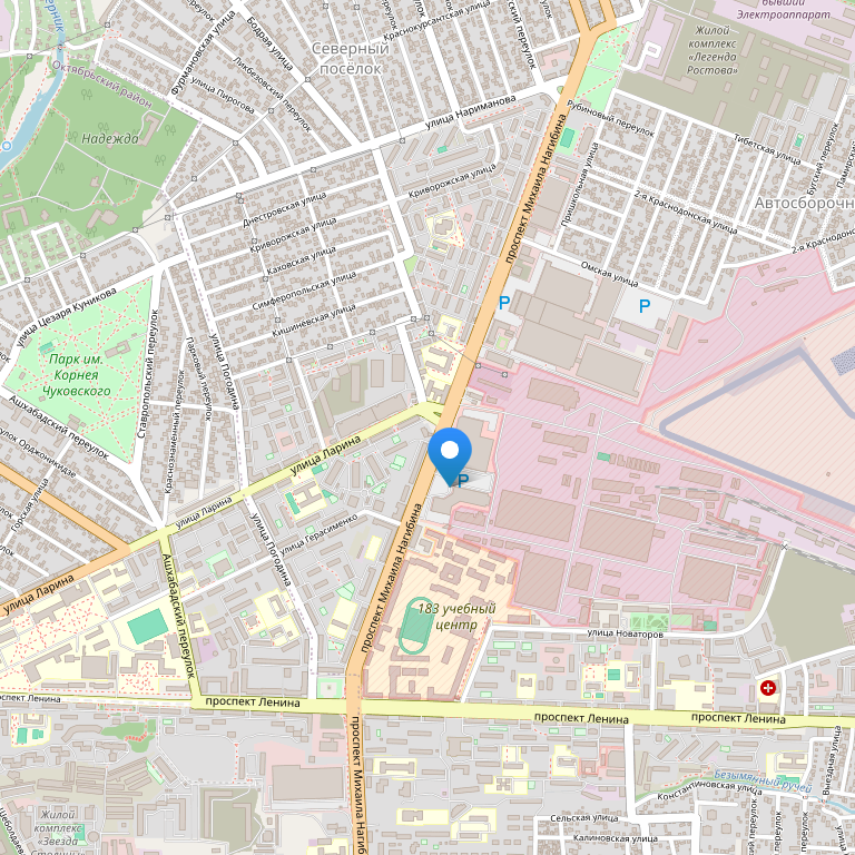 Гостиница расположена в центре города, в непосредственной близости от популярных торговых и развлекательных комплексовтаких как ТЦ “Горизонт”, ТЦ “РИО”, аквапарк "H2O" и всего в 15 минутах езды от центральной улицы Ростова-на-Дону Большой Садовой.