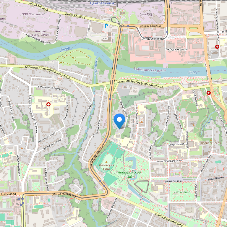 Отель находится в старом центре города Смоленска, возле набережной реки Днепр и в 100 метрах ходьбы от церкви Иоанна Богослова. В 300 метрах ходьбы от отеля расположен Музей русской водки и Храм Михаила Архангела, а в 400 метрах – Днепровские ворота, памятник Михаилу Кутузову и Собор Благовещения Пресвятой Богородицы.
