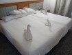 Номер: бронировали 2 стандарта, дали 2 бунгало без доплат. В бунгало с детьми жить очень хорошо, две комнаты, есть чайник, пополняется чай, кофе, вода. Номера убирали каждый день, крутили красоту из полотенец. В основном корпусе номеров не видела, но говорят большие.