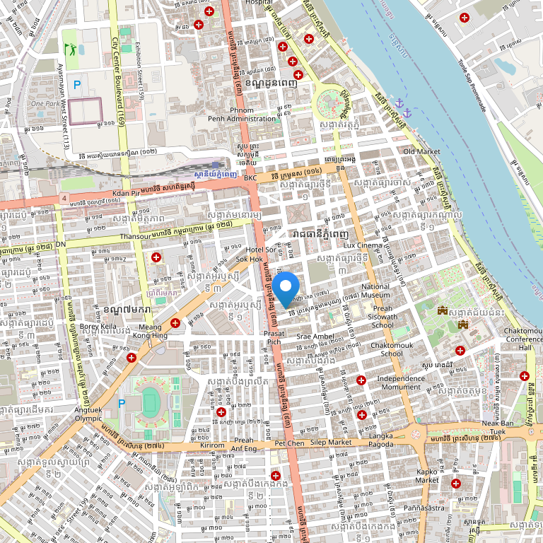 Отель расположен на бульваре Monivong Blvd, напротив центрального рынка Phsar Thmey, в нескольких минутах ходьбы от магазинов, супермаркетов и ресторанов, в 8 км от аэропорта Пномпеня.