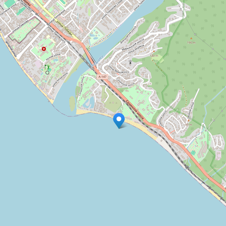Отель расположена Черноморском побережье, в курортном поселке Лазаревское, всего в 200 метрах от пляжа, рядом с аквапарком «Наутилус» и Центральным рынком, на расстоянии 15-ти минутной обзорной пешей прогулки от кафе, баров и ресторанов, в 1,5 км от железнодорожного вокзала Лазаревского, а вот что бы добраться до международного аэропорта Сочи, необходимо проехать 90 км на транспорте.