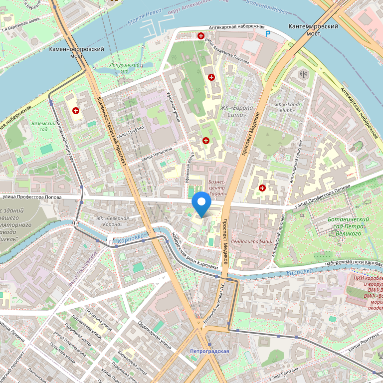 Отель расположен в исторической части Санкт-Петербурга, на Петроградской стороне в непосредственной близости от достопримечательностей города. С одной стороны отель находится в самом сердце Петербурга, в одном из центральных и деловых районов города, с другой стороны отель скрыт от городского шума и суеты, уютно расположен в благоустроенном внутреннем дворе с парковкой.