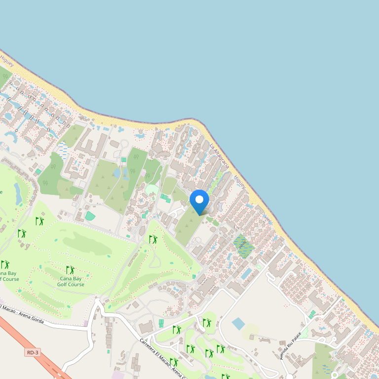 Majestic Mirage Punta Cana расположен в местечке Арена Горда (пляж Баваро) недалеко от Макао и в 25 км от Международного аэропорта Пунта Каны, 45 минут от международного аэропорта Ла Романа и в 1 ч и 25 минут от столичного международного аэропорта "Лам Америкас". До исторической части города Санто Доминго можно добраться за 2 часа.