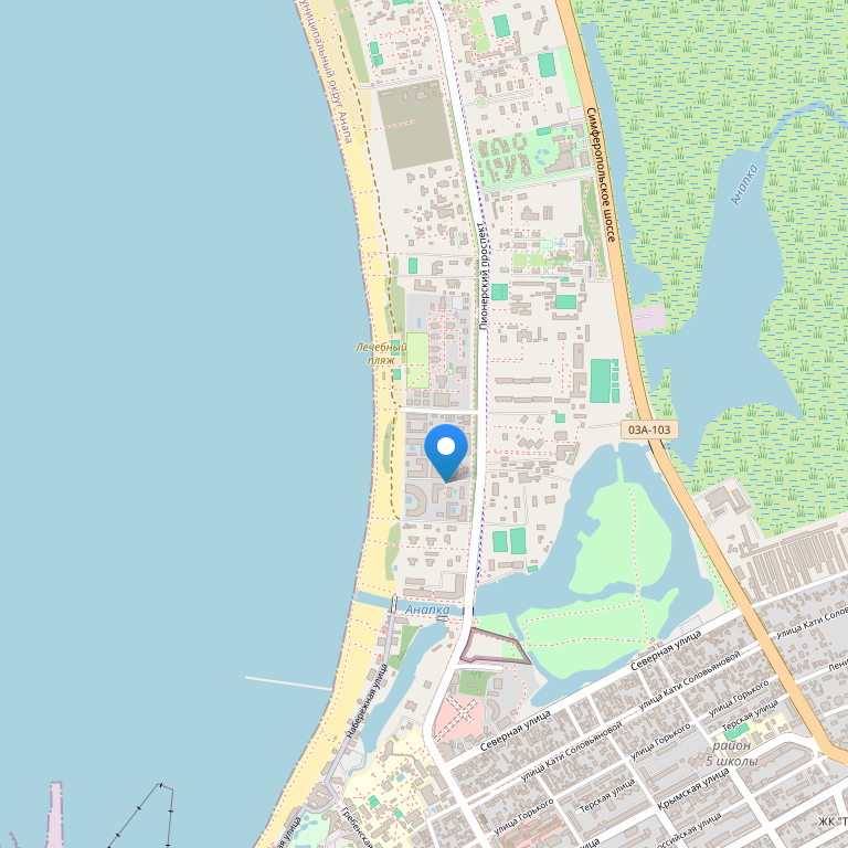 Отель Long Beach расположен в начале Пионерского проспекта на первой береговой линии в 40 метрах от моря. До центра Анапы 15 минут спокойным шагом. Общая площадь территории отеля 5000 метров.