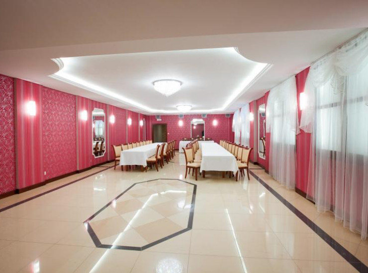 Зал этот отделан в королевском стиле. Озаренная блеском хрустальных люстр, в свете которых прекрасно выглядят вручную написанные картины. Здесь за роскошными столами, в приятной атмосфере, каждый может провести самые красивые и незабываемые моменты свей жизни (от 120 до 400 человек).