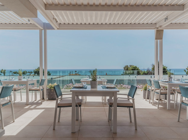 • Φiloxenia - главный ресторан отеляживой и интерактивной шоу-кухней предлагаеттрадиционные греческие деликатесы, десерты, свежие нарезанные фрукты, премиальную витрину для колбас и сыров, станцию для макарон и пиццы и широкий выбом блюд.Часы работы: 07:00 - 10:30, 19:00 - 21:30.