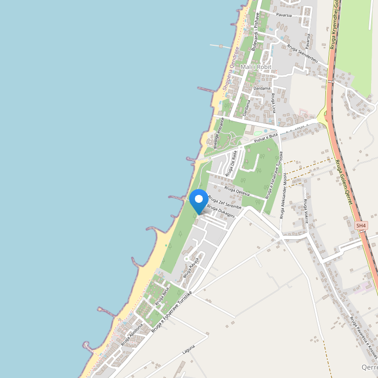 Расстояние от центра Дурреса составляет 15 км, от аэропорта Ринас – 35 км, от Тираны – 55 км.