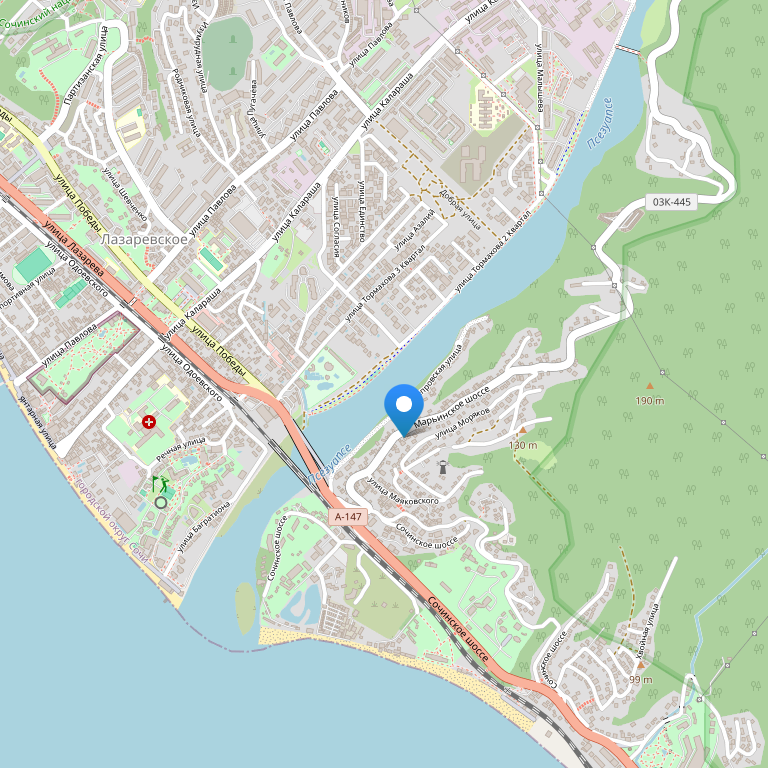 Удачное расположение здания позволяет Вам за 5 мин дойти до речки Псезуапсе, где Вы можете в тени деревьев пожарить шашлыки или окунуться в прохладную воду во время жары.