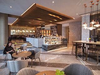 это идеальное место для встречи с друзьями или деловыми партнерами за чашечкой кофе, чая или легкой трапезой. В декоре этого кафе преобладает отделка из мягкого дерева и мрамора наряду с теплой цветовой гаммой. Стильный интерьер и терраса создают оживленную и одновременно умиротворенную атмосферу. Здесь вы сможете побаловать себя сладостями от выпечки до вкуснейших десертов или заказать их с собой.
