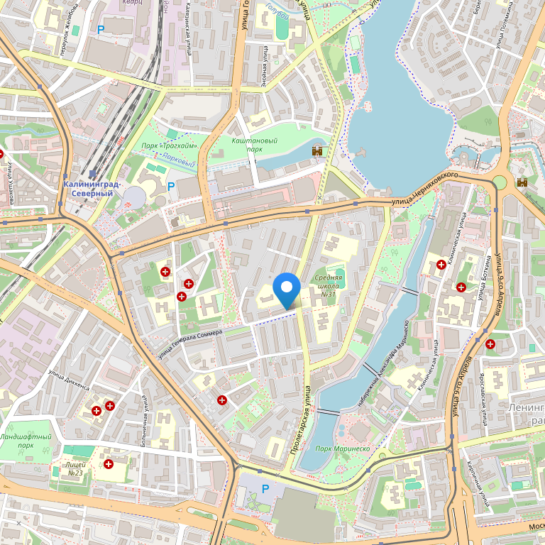 Отель находится в центре города, на набережной Верхнего пруда. Рядом находится множество достопримечательностей, включая Музей янтаря. Поездка до аэропорта займёт 25 минут, до моря 30-45 минут.
