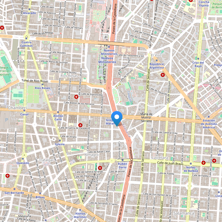 Отель NH Zurbano расположен в 100 м от Paseo de la Castellana, неподалеку от метро Nuevos Ministerios.