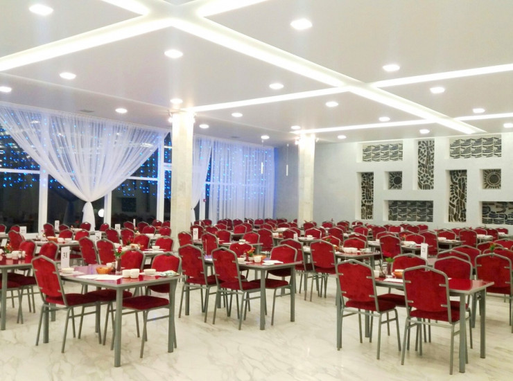 Просторная и уютная столовая, предлагающая гостям сбалансированное трехразовое питание.
