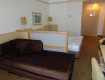 Номер небольшой, состоял из двух комнат в одной из которых (для взрослых) был выход на балкон с видом во внутренний двор корпуса. В номере: маленький холодильник,телевизор (есть русские каналы) ,...