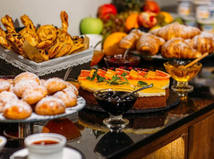 По утрам для гостей сервируют завтрак по системе Шведская линия. На завтрак подают свежую выпечку, ароматный кофе и другие блюда европейской и грузинской кухни.