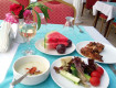 При заезде начали просить деньги за каждый чих. Изначально в турагенстве покупали путевку в самый хороший корпус, но когда приехали нам сказали, что заселят нас в дальний, если не заплатим 50$. Деньги платили за 2 отдельных номера и в итоге заселили нас в 1 с 2 комнатами и 1 душем. В два отдельных сказали, что заселят, но мы будем плакать, так как они ужасные. Супер...