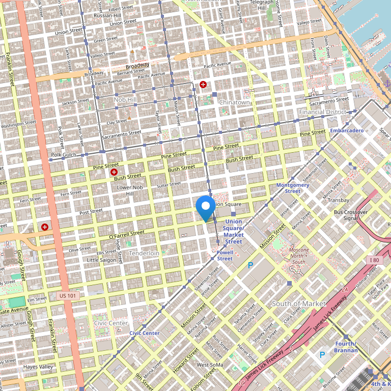 Стилизированный в парижском стиле, отель Cornell Hotel de France был построен в 1910 и до сих пор сохранил оригинальный лифт Otis. Отель расположен в самом центре города между Union Square и Nob Hill, в пяти кварталах от делового района Сан-Франциско.