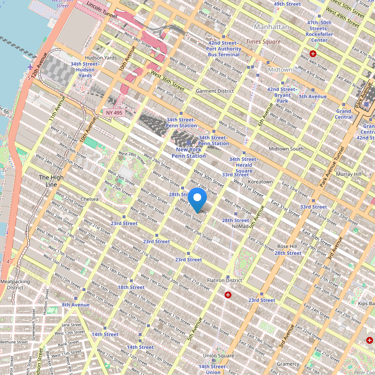 Отель расположен на 116 West 31st Street близко от района Мэдисон Сквэар Гарден и в пределах квартала ходьбы от Macy's, района Челси и обновленной Таймс Сквэар. Hampton Inn Madison Square Garden находится в центре одного из лучших торговых районов Нью-Йорка.