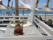 Собственный пляж, много шезлонгов, так что занимать с утра пораньше не нужно.