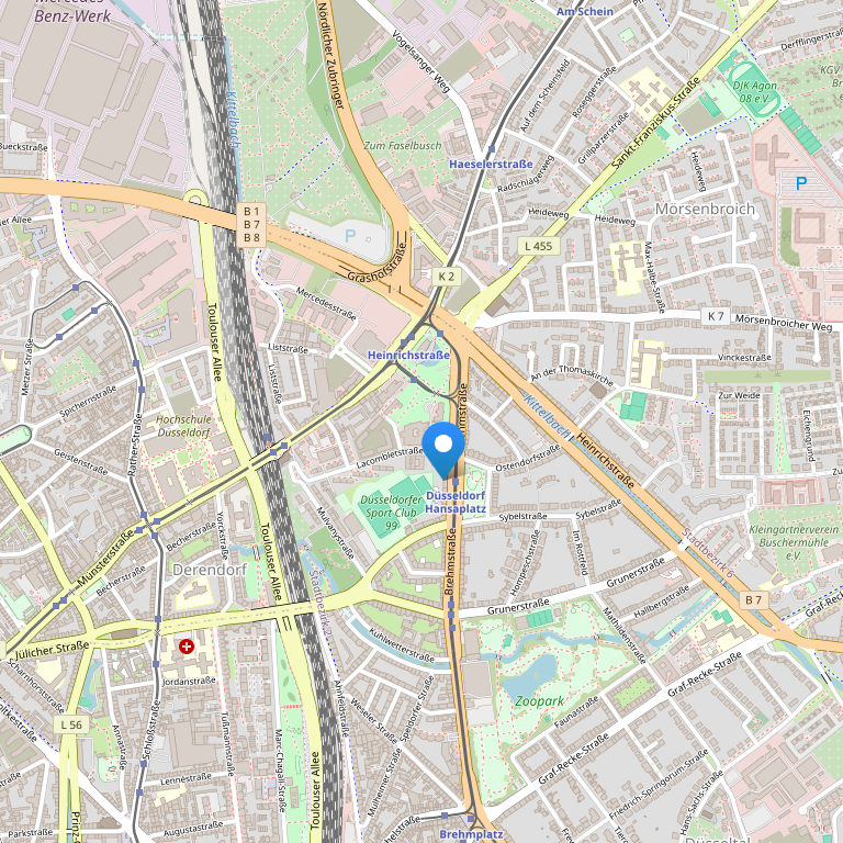 Этот трехзвездочный отель расположен в районе Дюссельдорфа Дерендорф между торгово-выставочным комплексом Messe Düsseldorf и центром города. Городская железнодорожная линия Düsseldorf-Derendorf S-Bahn расположена менее чем в 500 метрах от отеля, предоставляя быстрый доступ к центру города.
