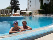 Пообедали(вполне устроил ассортимент) и подошли за ключами (было 14-40). Вошли в номер - и я ахнула. И сам номер (большой и уютный, с видом на море) красиво украшен, и бутылочка в ведерке, и презент от Новостар (продукция Лагуны), и фрукты, и...