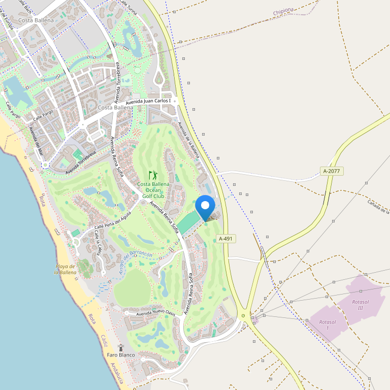 The Barceló Costa Ballena Golf & Spa**** hotel is situated on the Costa de la Luz, between the municipalities of Rota and Chipiona and within the Tourist and Leisure Complex of "Costa Ballena". It is also situated 800 m from the beach, 30 km from Jerez de la Frontera, 45 km from Cadiz and 120 km from Seville.