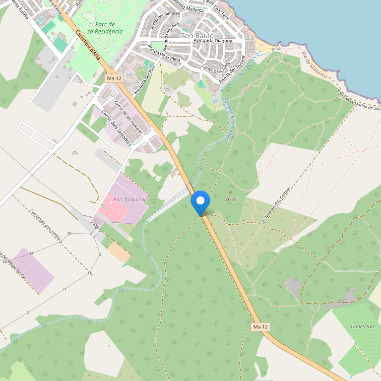 На северном побережье Майорки, в районе Las Gaviotas, в 150 метрах от пляжа, в 2 км от центра курортной зоны Алькудия с её многочисленными барами, магазинами, кафе и ресторанами.