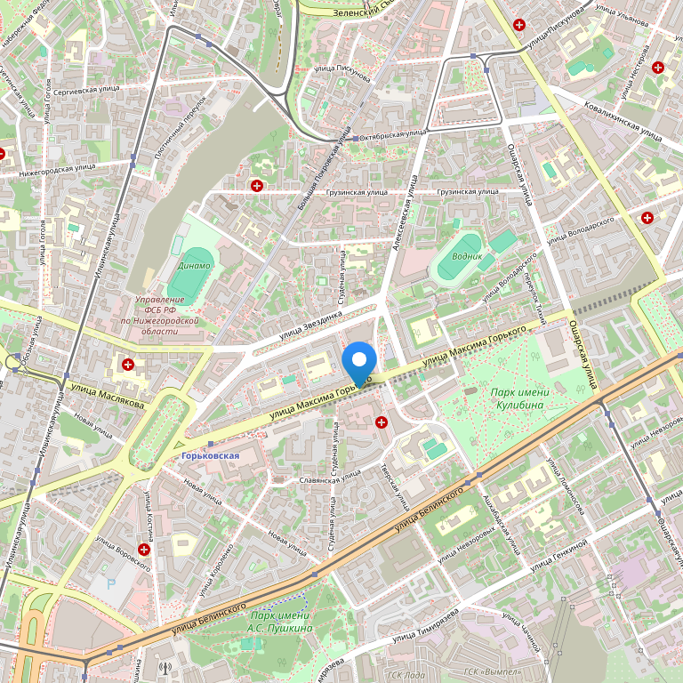 Отель расположен на улице Максима Горького в центре города.