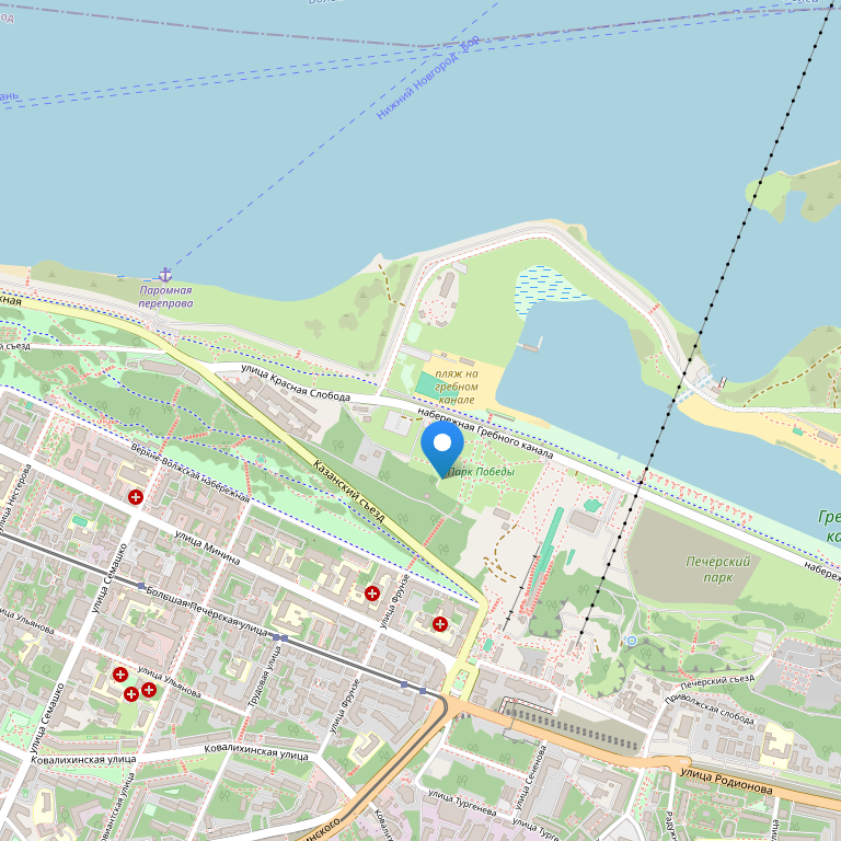 Отель расположен на Нижневолжской набережной в исторической части города недалеко от Нижегородского Кремля. Расстояние до: центр города – 0,5 км, ж/д вокзал – 5 км, аэропорт – 25 км, речной вокзал – 2 км. Ближайшая станция метро: «Московская» (Московский вокзал, 5 км).