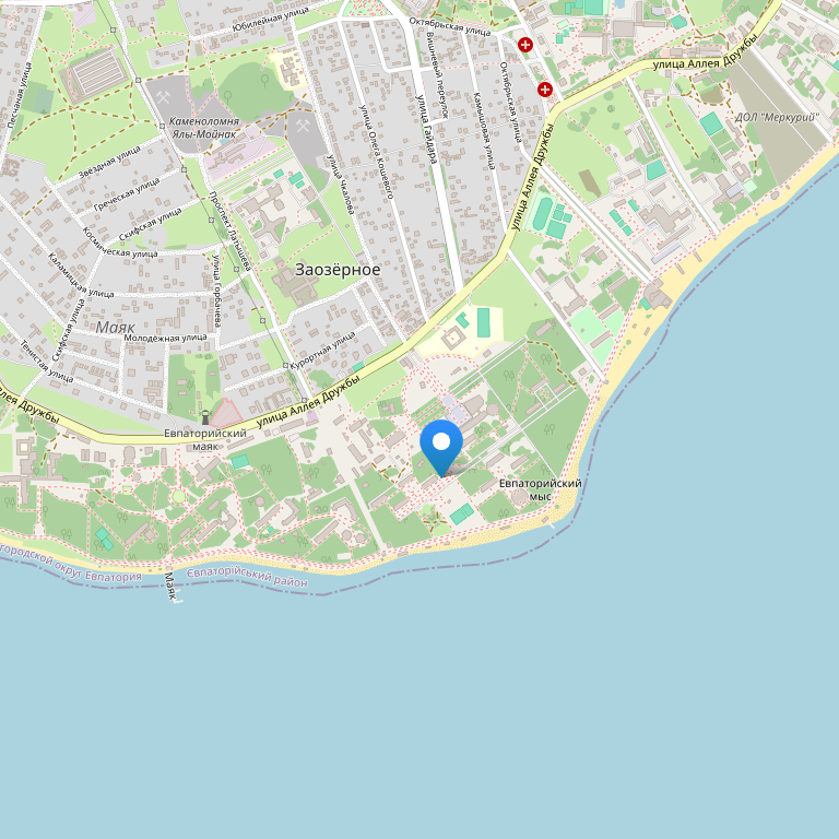 Отель расположен в курортном районе г. Евпатория, в п. Заозерное.