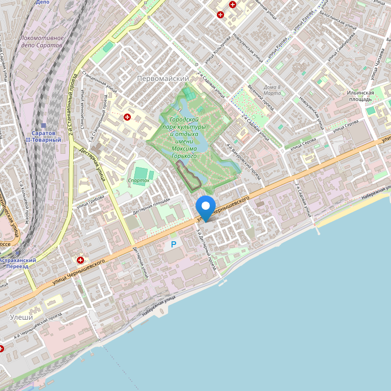 Отель расположен в десяти минутах езды от культурного и исторического центра города, саратовский Арбат — проспект Кирова, театры, музеи, набережная, кафе, рестораны, парки, магазины. Аэропорт находится в 7 км от отеля, ж/д вокзал – в 5 км, речной порт – в 5 км.