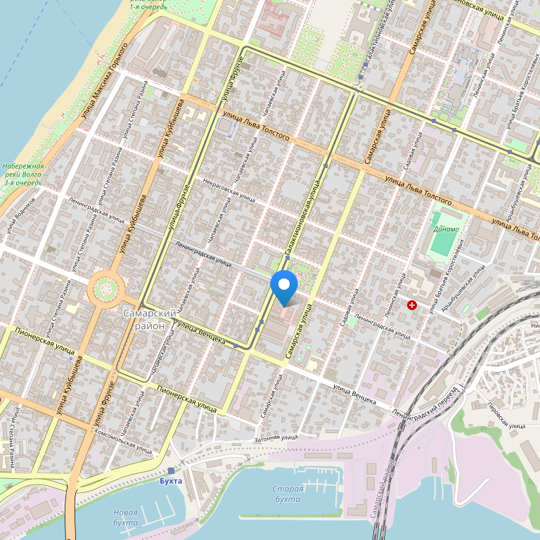 Отель находится в историческом центре Самары на пешеходной улице Ленинградская, в 50 метрах от площади имени Высоцкого,