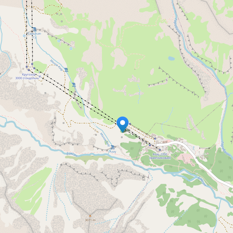 Отель расположен на поляне Азау. От крыльца отеля до станции канатной дороги «Эльбрус» можно дойти всего лишь за 2 минуты.