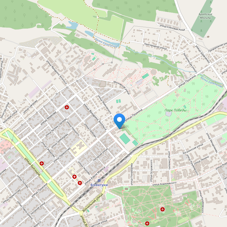 Санаторий расположен в курортной зоне города Ессентуки, вблизи минеральных источников Ессентуки 17, Ессентуки 4, Ессентуки новая.