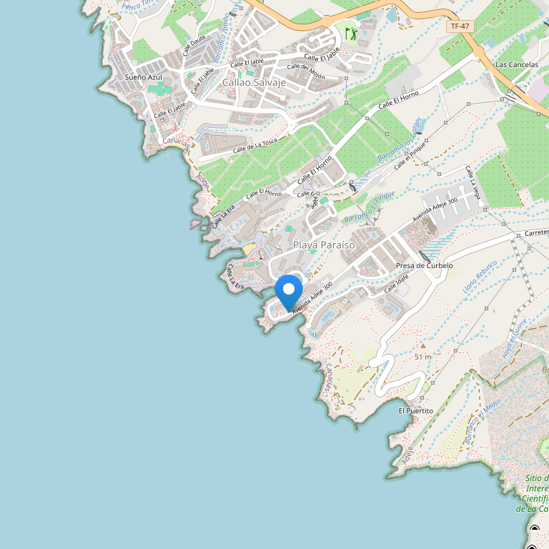 Отель расположен в 30 км от южного аэропорта острова Reina Sofia, в 10 км от курортной зоны Costa Adeje, у пляжа Playa Paraiso.