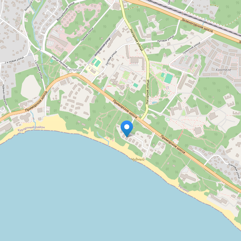 Пансионат расположен в известном курортном поселке Репино - в 40 км от Санкт-Петербурга. Недалеко от пансионата находится дом-усадьба знаменитого русского художника И.Е.Репина.
