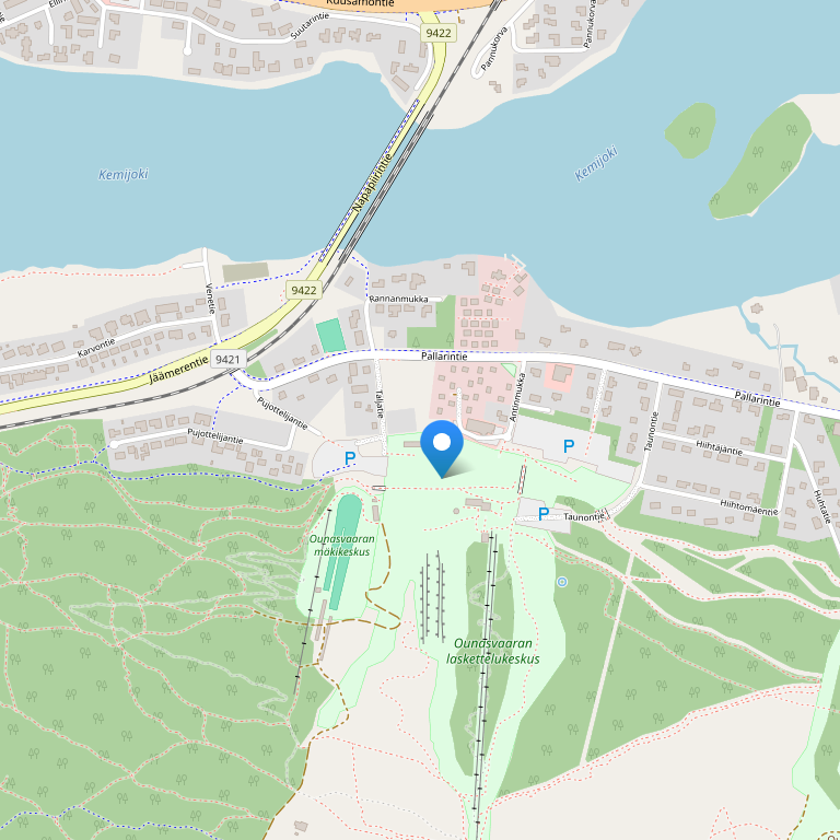 Ounasvaaran Pirtit находится на берегу реки Кемийоки в районе города Рованиеми Оунасваара.