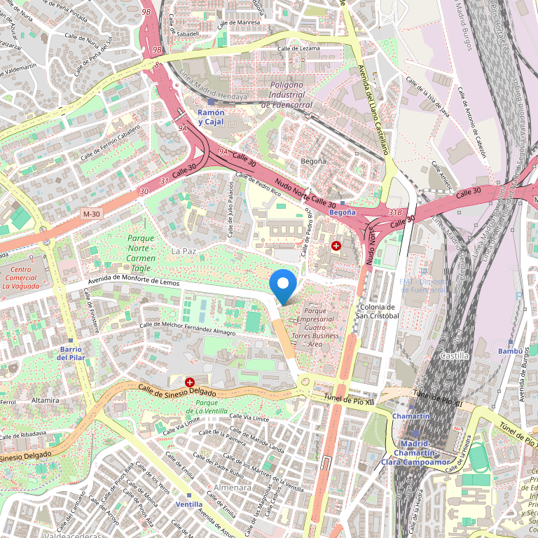 Отель расположен в великолепном строении «SyV Tower» высотой 230м (38 этажей), спроектированном архитекторами и дизайнерами Enrique Alvarez-Sala Walter и Carlos Rubio Carvajal.