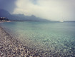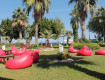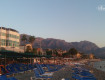Пляж - просторный, но лежаков не хватает, нужно пораньше занимать место. На пляже - крупная галька, для людей с чувствительными стопами лучше одевать тапочки, или спускаться в море по спуску (он есть, и очень неплохой), а до этого спуска идти в шлепанцах (именно так мы и делали). Вода чистая и прекрасная :))