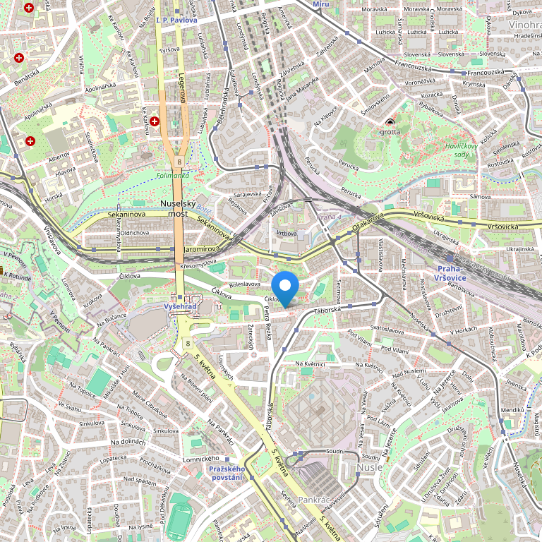 Расположен в тихом районе в трех трамвайных остановках от Вацлавской площади.