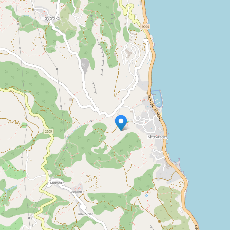 Located 12 km from Corfu town, 80 meters from the beach, 11 km from the airport, 13 km from the port.