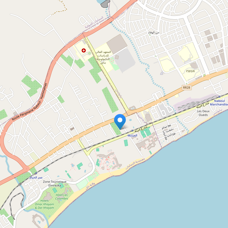 В 60 км от аэропорта г. Монастир, в райне Хаммамет.