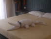 НОМЕР дали на первом этаже без балкона, рядом с комнатой, где уборщики хранят полотенца, бумагу и всякую химию для уборки, поэтому каждый день от туда доносились их голоса и грохот. Номер был с двумя кроватями. Третью, похожую на раскладушку принесли позже, для ребёнка и в номере стало ещё тесно....