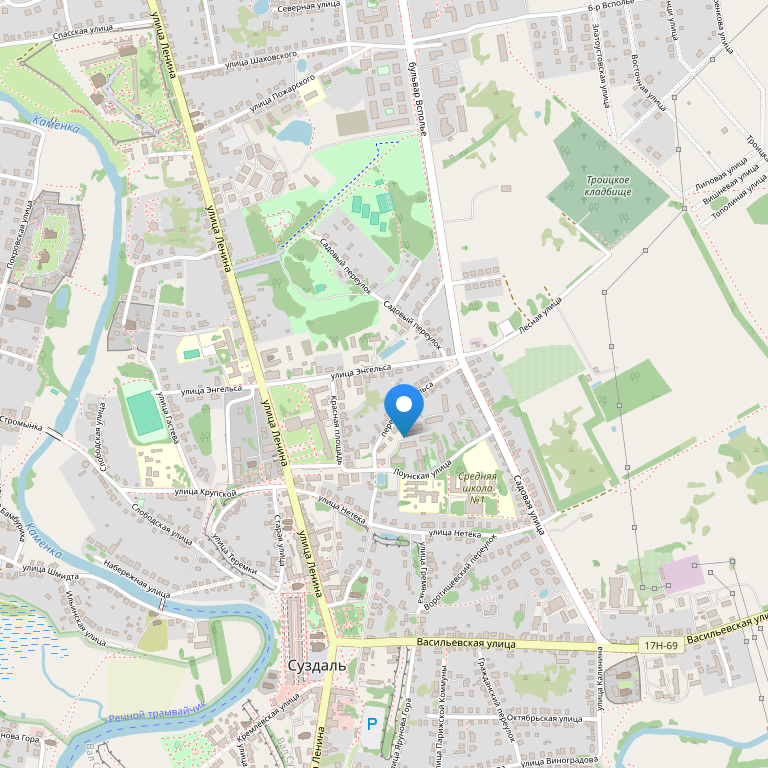 Отель расположен в переулке Энгельса, откуда видна башня Ризоположенского монастыря. Главный Кремль города Суздаля и Спассо-Евфимиев монастырь находятся недалеко от дома (10-15 минут пешком).