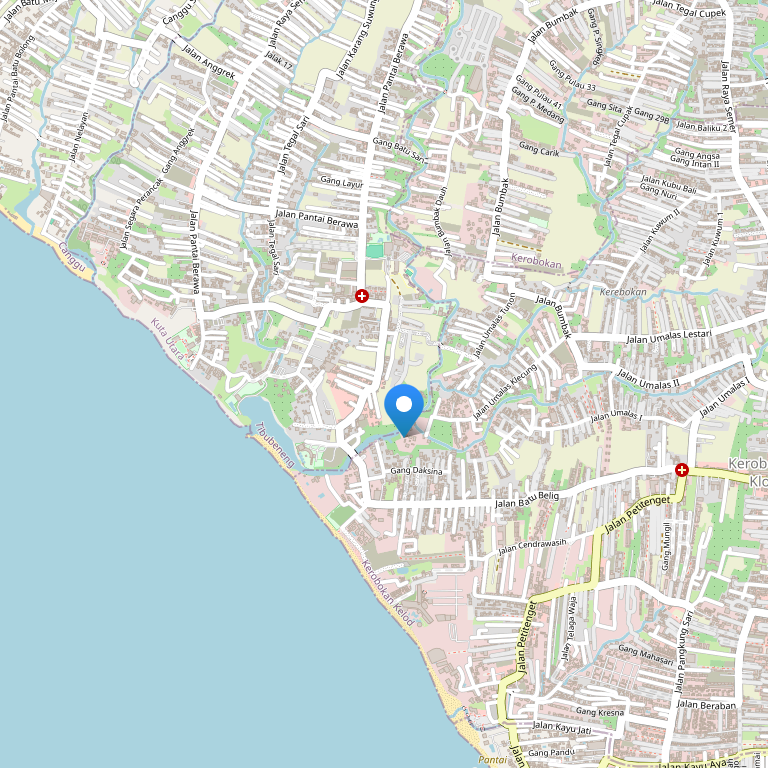 Отель расположен в спокойной сельской местности, в деревне Kerobokan, в окружении рисовых полей. Международный аэропорт находится в 20 минутах езды от отеля, пляж Семиняка и центр его ночной жизни – в 10 минутах езды.