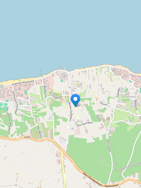 Отель расположен на пляже, в 5 км от курорта Херсонисос, в 23 километрах к востоку от столицы острова Ираклиона, в 20 километрах от международного аэропорта.
