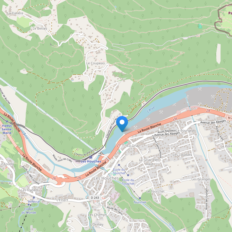 Отель расположился в хорошо сохранившейся деревне Ле Зуш в 6 км от Шамони, недалеко от центра курорта напротив кресельного подъемника «Du Tourchet» и в нескольких минутах езды от подъемника «Bellevue». Недалеко от отеля расположена остановка автобуса, курсирующего по всей долине Шамони.