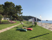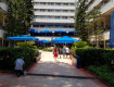 Зона бассейна расположена близко к морю. Можно легко менять место расположения. Также есть второй бассейн, баскетбольная площадка, футбольное поле, один теннисный корт с бетонным покрытием (минус).