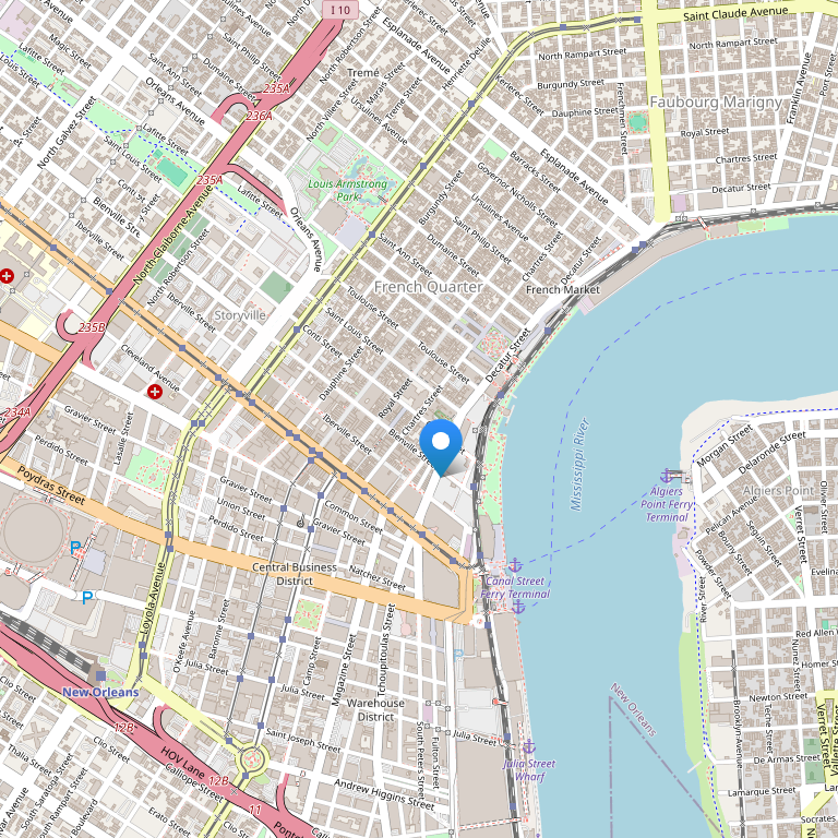Этот отель в историческом стиле расположен во Французском квартале, в сердце Нового Орлеана, недалеко находятся Historic New Orleans Collection, Historical Pharmacy Museum и Le Petit Theatre Du Vieux Carre. Также неподалеку Riverwalk и Jackson Square.